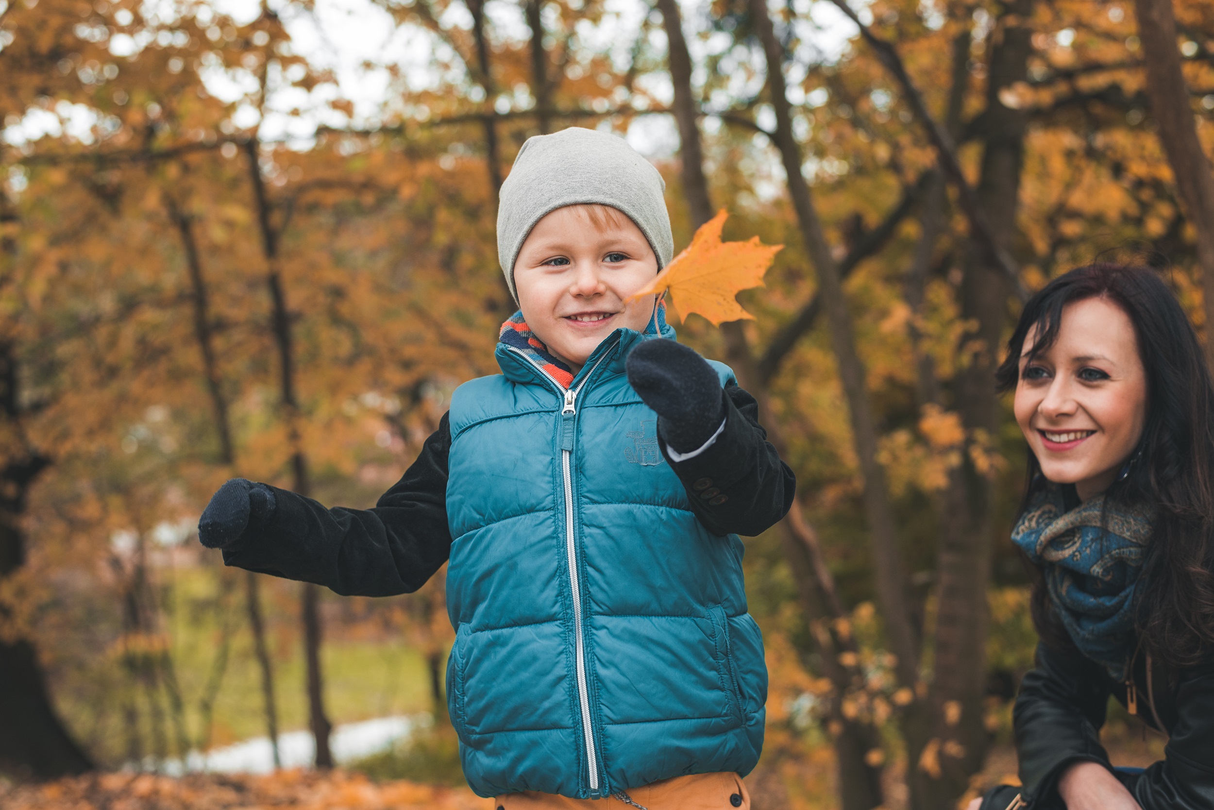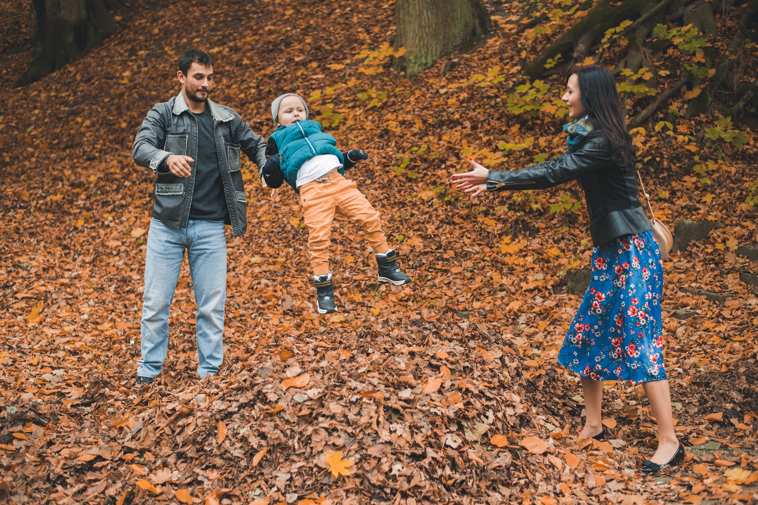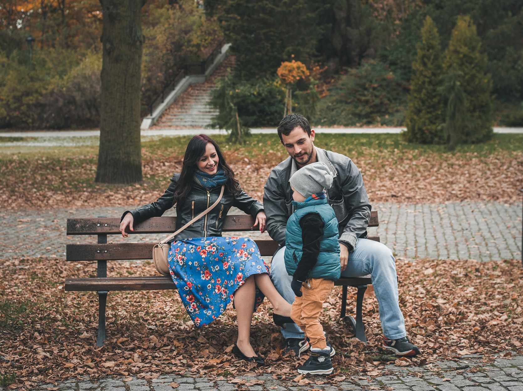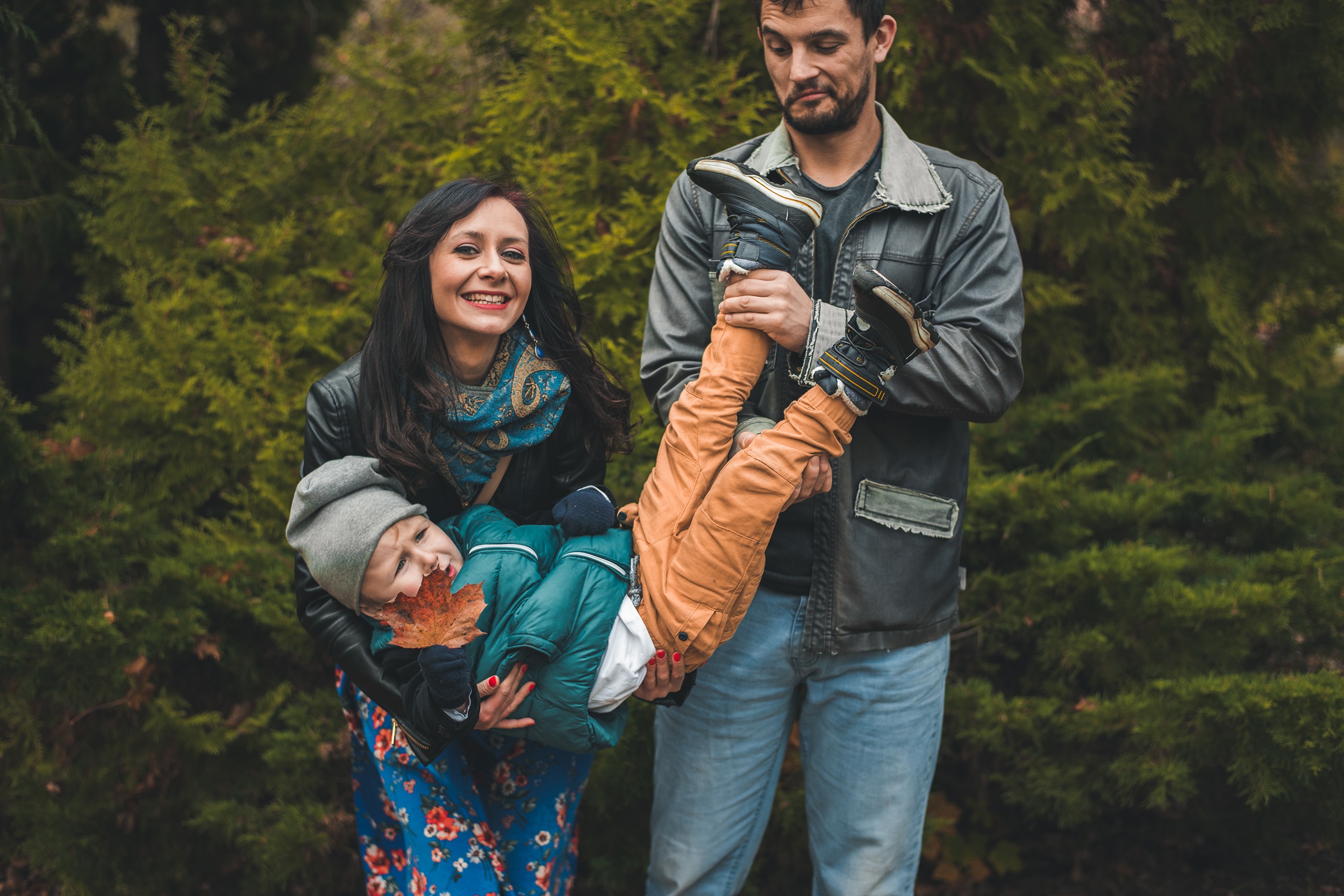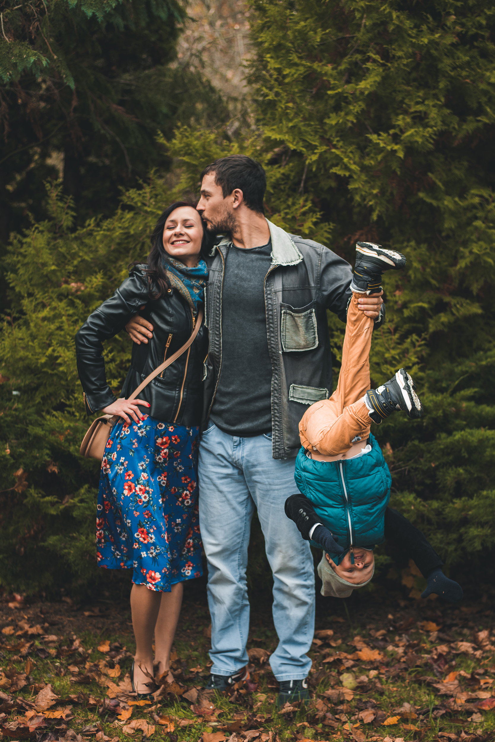 Tego dnia było pochmurnie, powietrze pachniało wilgocią, a pod stopami chrzęściły liście. Idąc pośród szumiących drzew mogłem uwiecznić kilka „zupełnie niepozowanych” 😉 rodzinnych portretów, miłość dwojga zakochanych w sobie ludzi oraz ich niesamowitą relację z małym człowiekiem, pełną radości i szaleństwa. Zresztą – szaleństwo udzieliło się wszystkim do tego stopnia, że nie wiem, kto był bardziej dzieckiem na tej sesji 😉